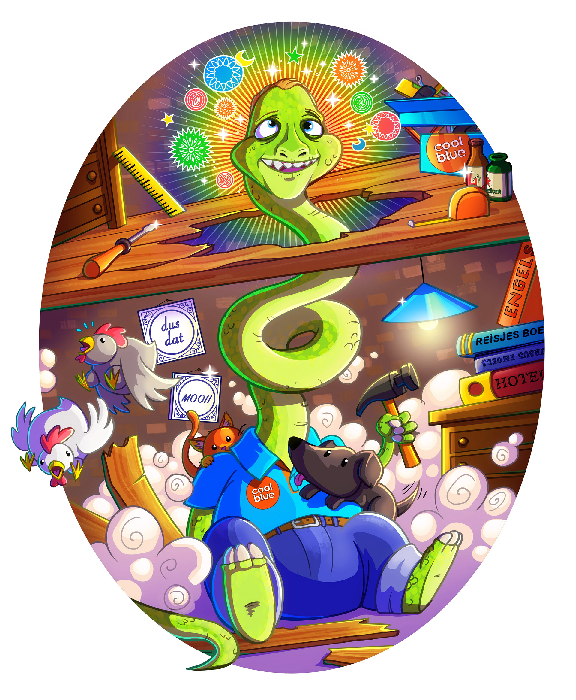 For Dutch e-commerce company Coolblue, I regularly create custom in-house illustrations to celebrate long-standing employees. Each person receives a personalized drawing as a token of appreciation for their years of dedication.